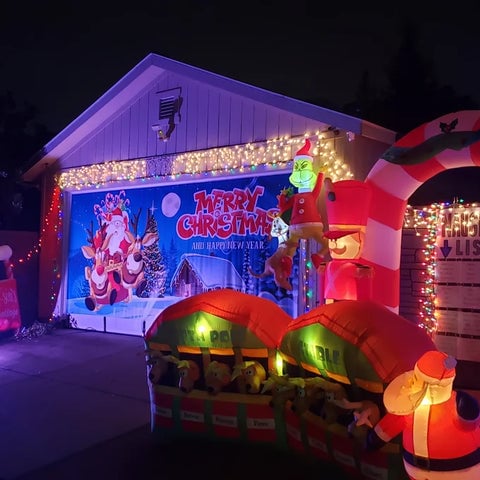 Picture the looks on their faces when they see Santa Claus himself photobombing your house! Get ready to hear the neighborhood gossip shift from Susie's fruitcake to your epic garage door.