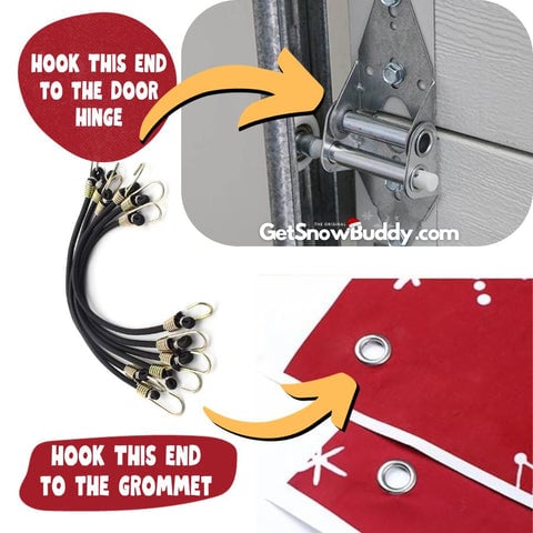 Hanging up our lightweight nylon covers is as easy as pie – and we're talking about the easy kind of pie, like the ones that come pre-made. Simply stick the top velcro to the door, attach one end of the bungee cords to your garage door and the other to the metal grommets on the cover, and voilà! You're good to go faster than you can say, "Frosty the Snowman."